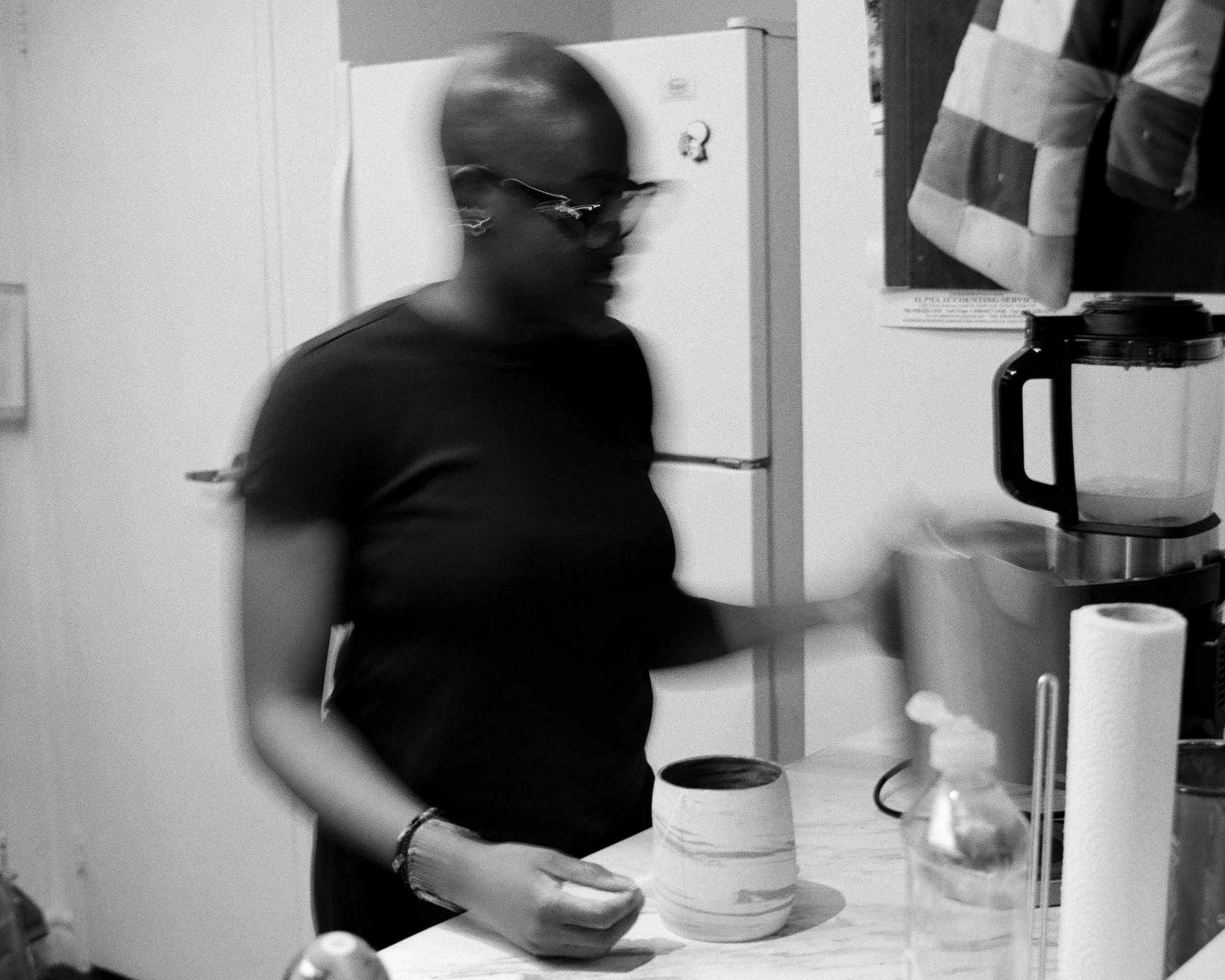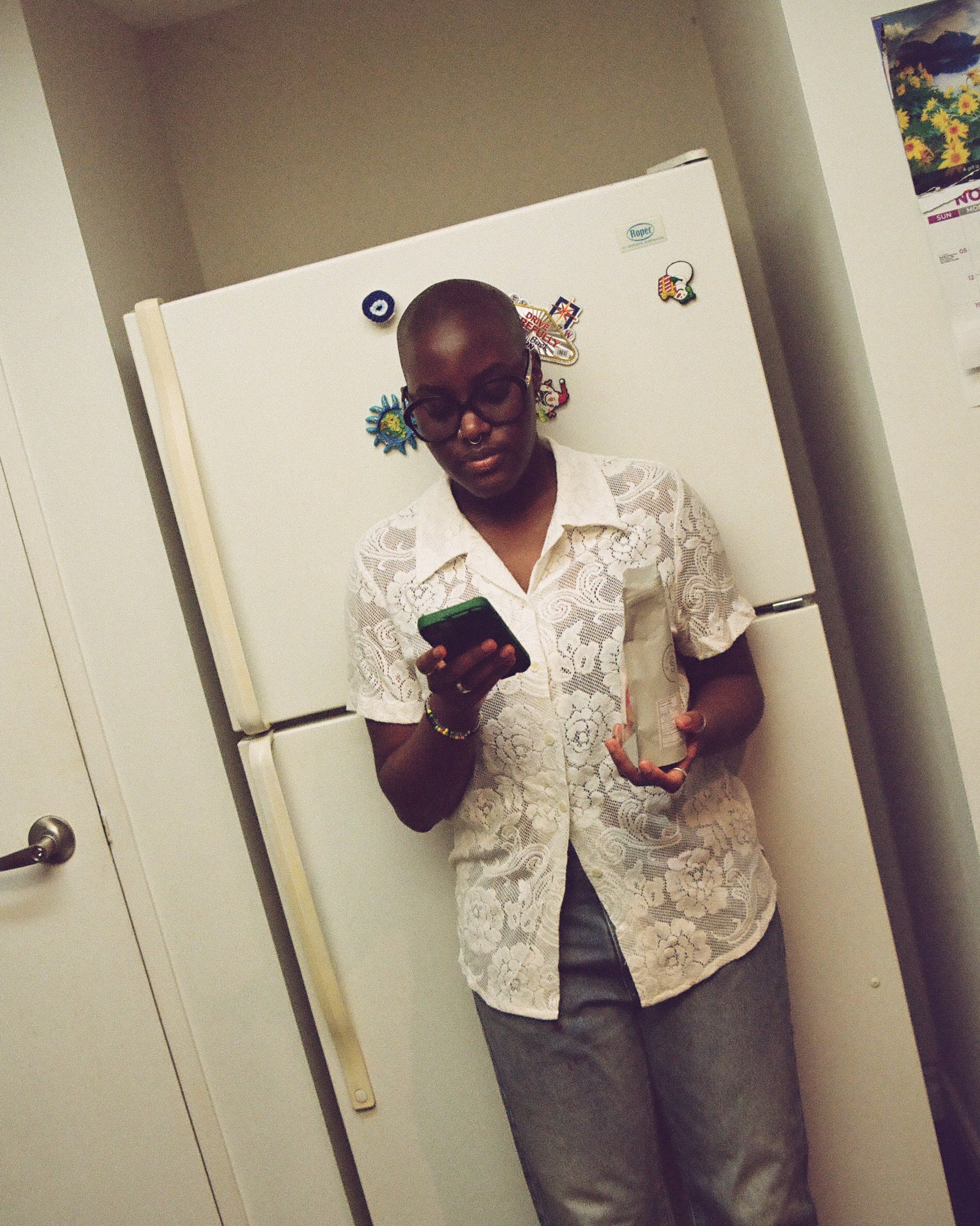 “When I’m in my own space I’m chill, but once I leave I get nervous. Sometimes I’m overthinking or too in my head. My pre-date ritual is putting on some R&B, drinking tea, lighting incense, and eating some snacks.”—Chels