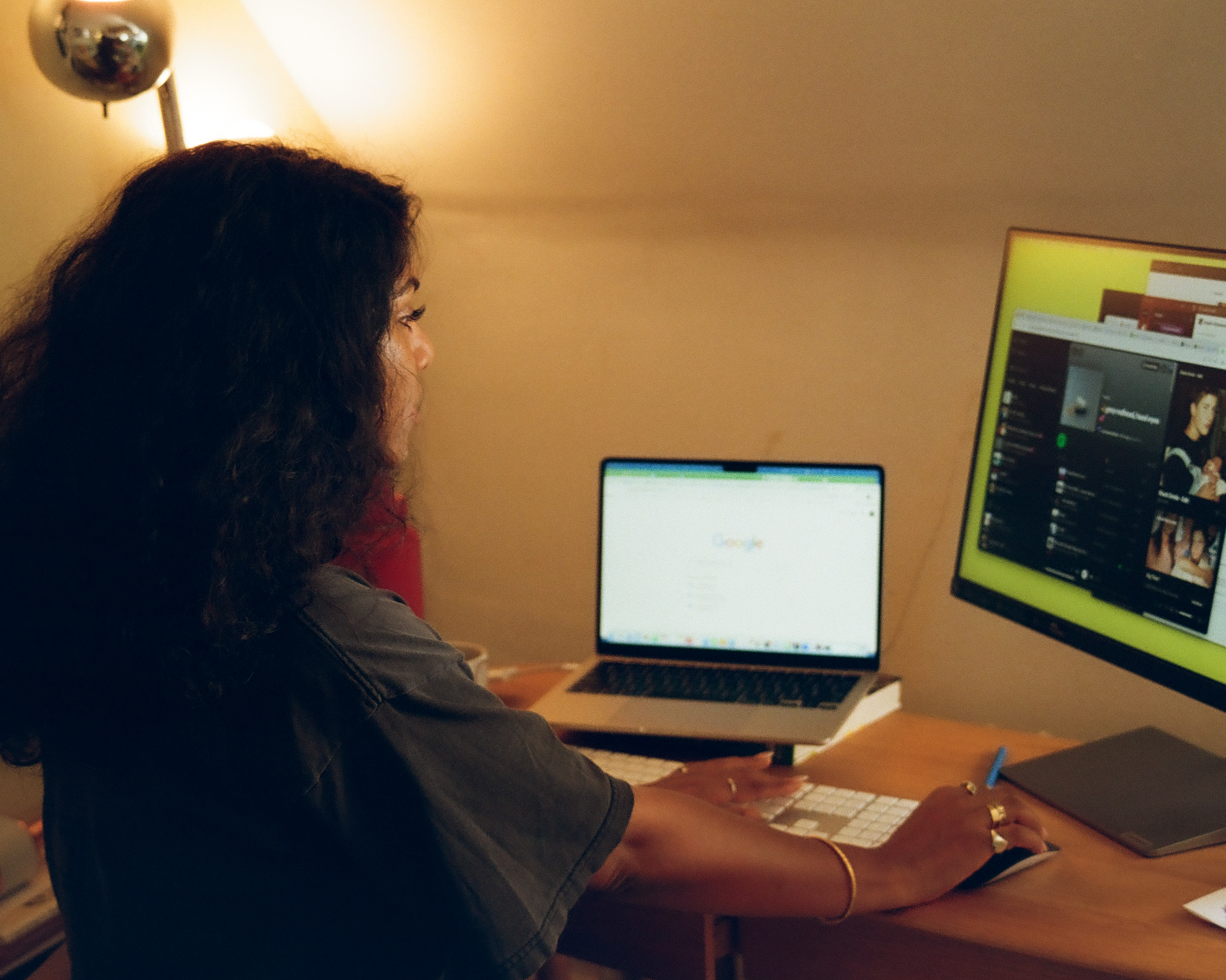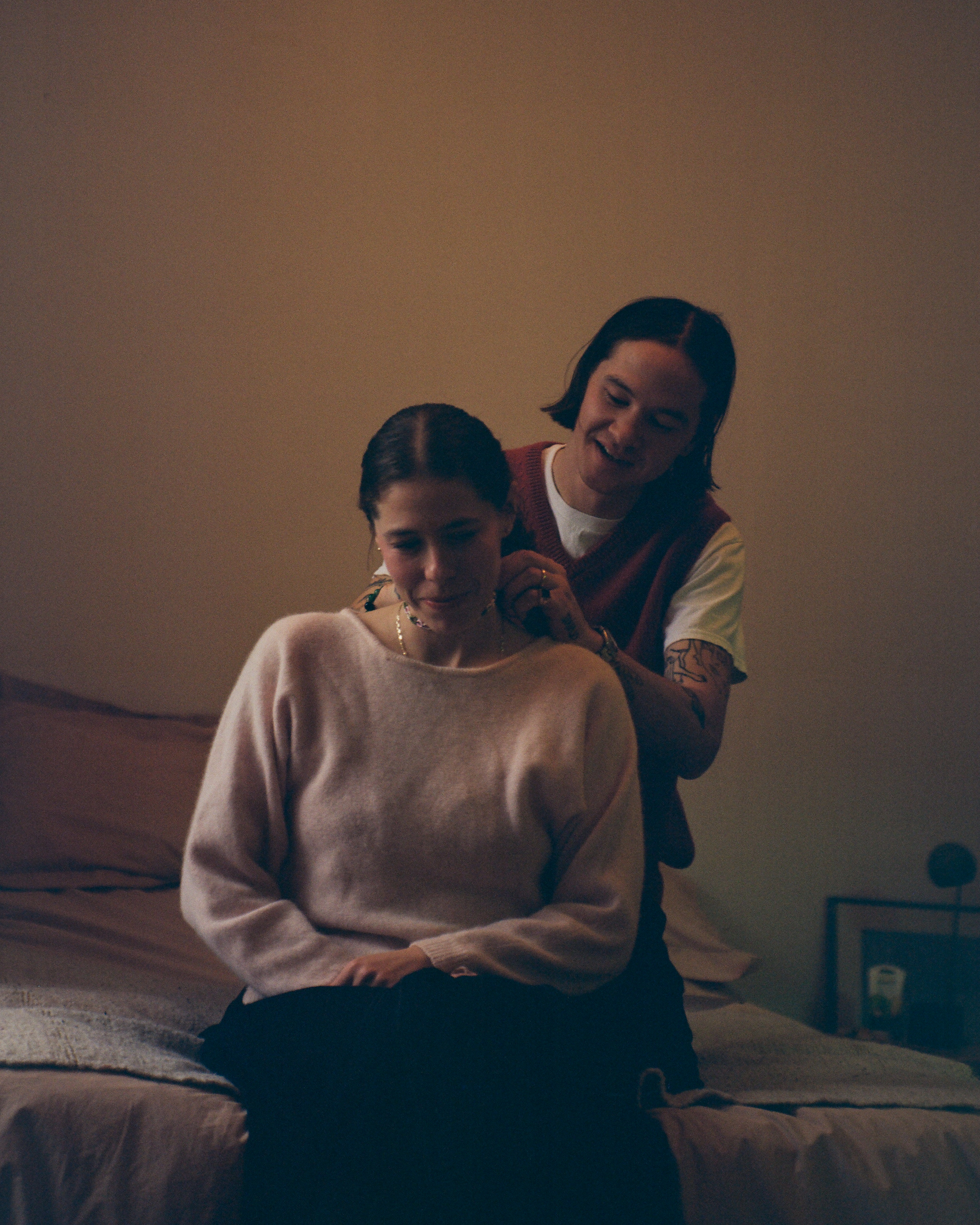 In order to shed light on the rituals of the pre-date realm, we visited six people at home in Toronto as they prepared for a date. Mel Racho arranged a date with someone new via Feeld, taking the time to decompress with some coffee and a book before heading out. Married couple Beth and Justin put on a record and lit some incense for a special date night at home. Fashion designer Tyrell Harriott caught up on Tik Tok and sought out the perfect fit for a date with a close friend. Even private moments can become powerful ways to connect with ourselves as part of connecting to each other. From universal pre-date activities like scrutinizing outfit choices, grooming, or having a drink, each person demonstrated that confidence and vulnerability can coincide.