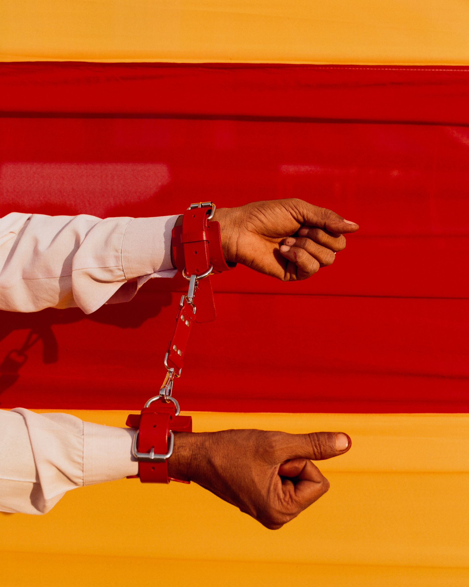 Atal spikes a knife into the strip of leather and demonstrates how the strap fastens around his ankle. The handcuffs have self-detachable buckles, so no one is tied up who doesn’t want to be. “I don’t like to be restrained,” Singh laughs.
