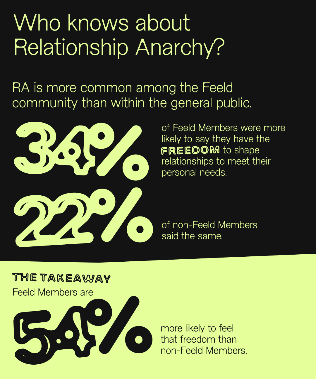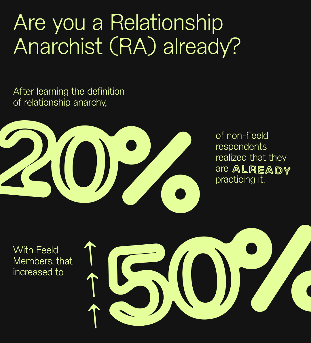 There’s a significant increase in this when we look at Feeld Members where 1 in 2 Members surveyed realized they have practiced relationship anarchy.