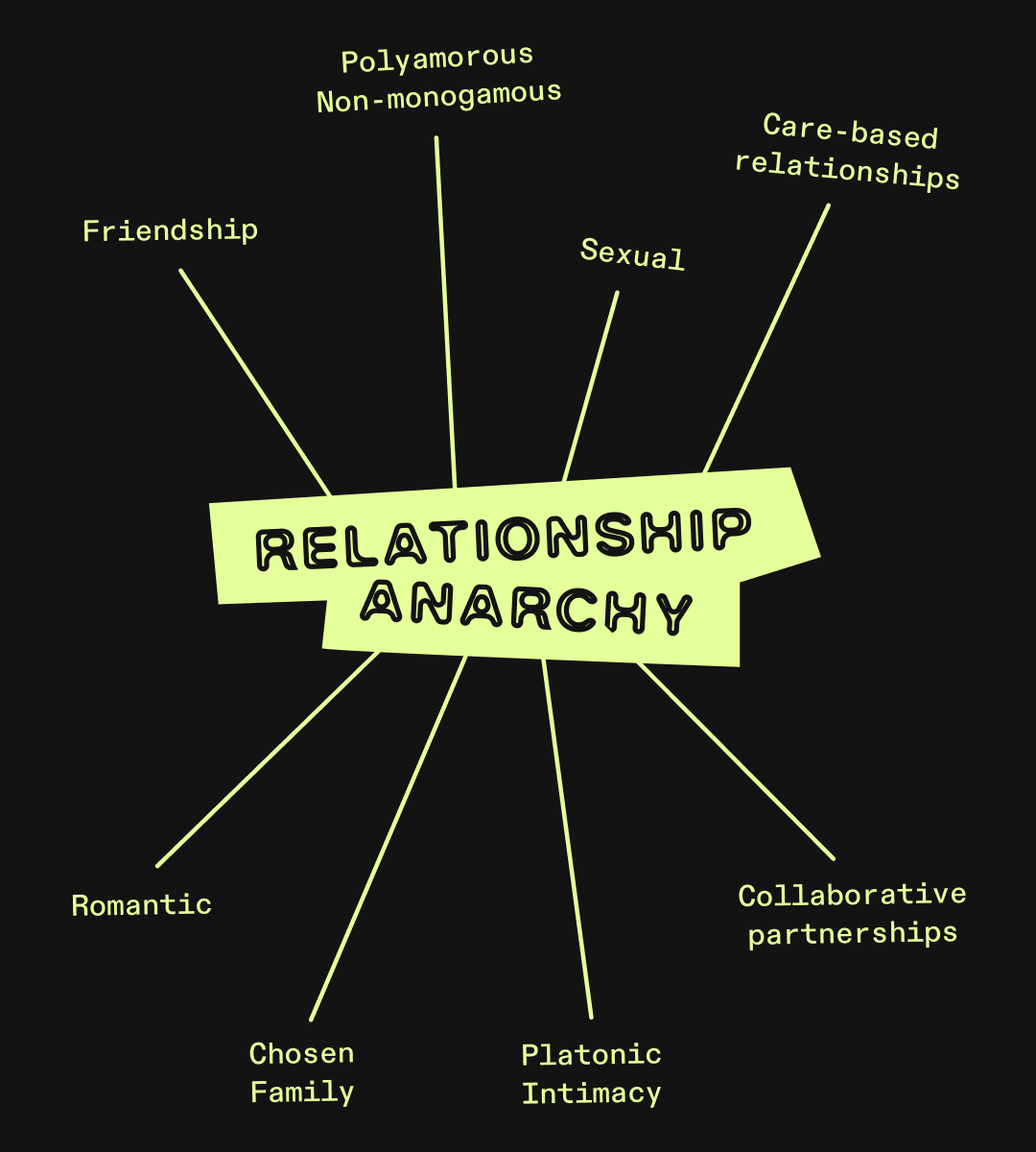 While ENM offers various takes on building connections, relationship anarchy stands out as particularly unique. It’s a relationship style coined by writer and activist Andie Nordgren (though RA has roots in many different histories and cultures), and follows politically anarchic principles of anti-capitalism and anti-hierarchy.