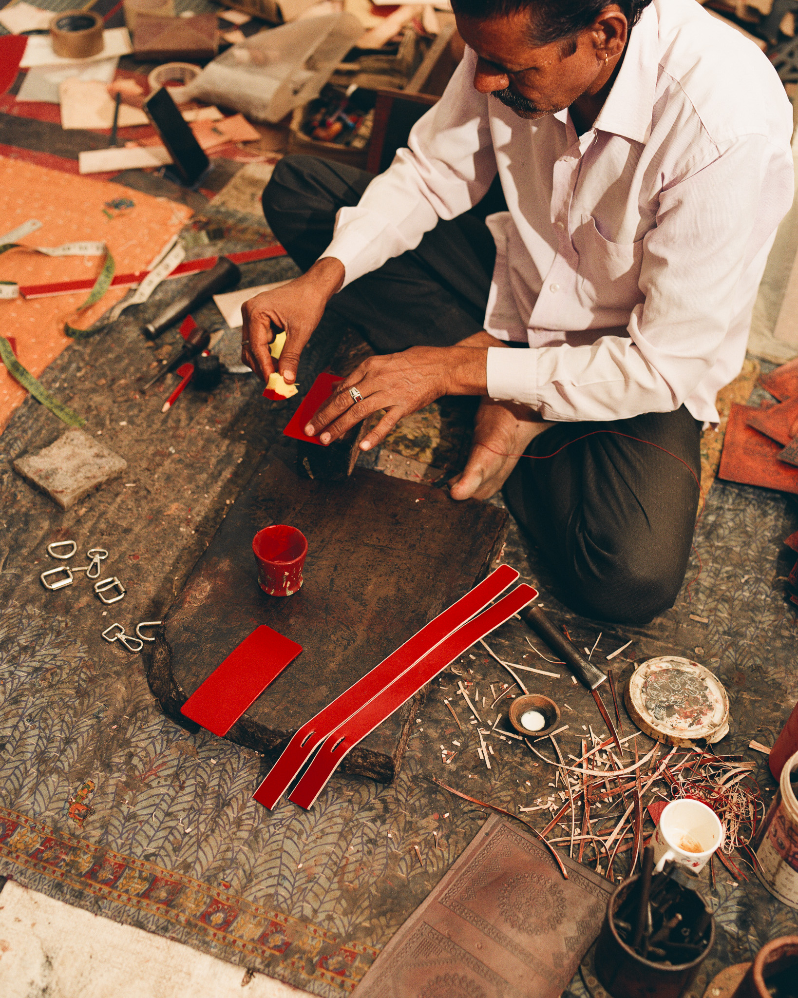 When they first started working together, Singh would bring over tools, but Atal ignored them, opting instead for his own well-worn rafi scissors or singular punch and die (a tool used to punch holes into material). Singh respected and admired Atal’s traditional craftsmanship.